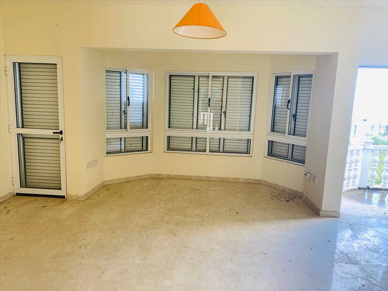 Single aspect with marble floors and patio doors out to balcony