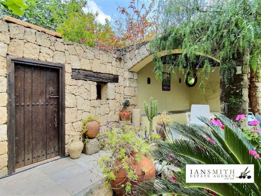 Lovingly restored and beautifully presented, this historic Bellapais village house dating back to the 13th Century is just a minutes walk from the Abbey and offers original character features throughout including a stone arched entrance, beamed ceilings, flagstone floors, a fireplace and wooden windows and shutters. The accommodation comprises of a spacious living area that opens into a kitchen / dining room, a winter snug, two bedrooms and two bathrooms. Outside the charming courtyard garden has an arched and covered terrace, stone built storeroom, kleftiko oven, and steps up to a roof terrace with views to both the sea and mountains. A rare find that is highly recommended for viewing.