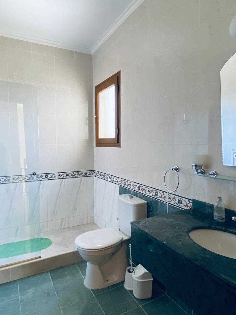 Single aspect, ceramic floor and wall tiles, washbasin in marble topped vanity, shower with screen, heated towel rail and wc.