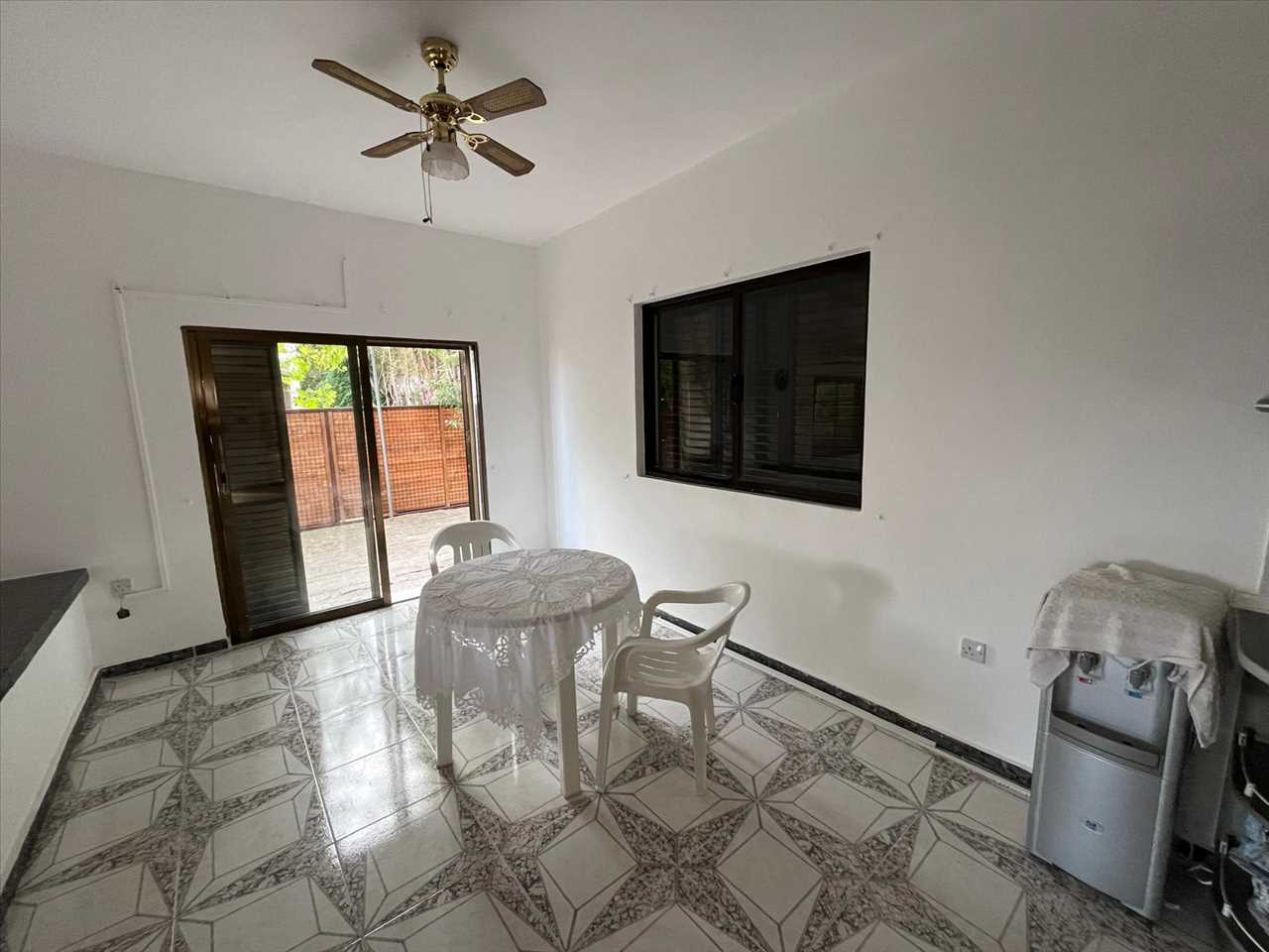 Dual aspect dining area set in open plan living with ceramic floors and sliding doors leading out into the garden.