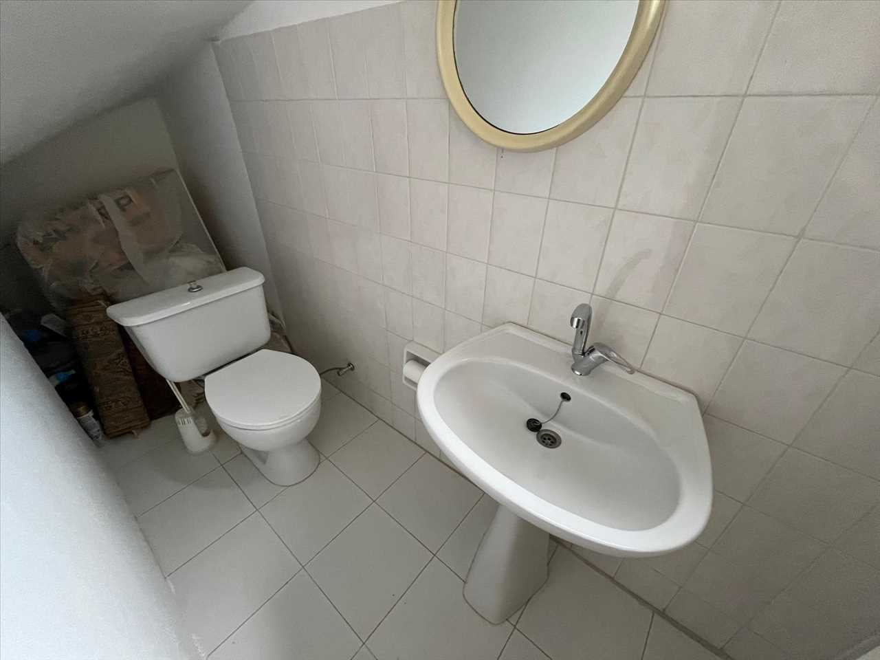 Single aspect cloakroom with ceramic tiles, sink and toilet off the entrance hall on the ground floor.