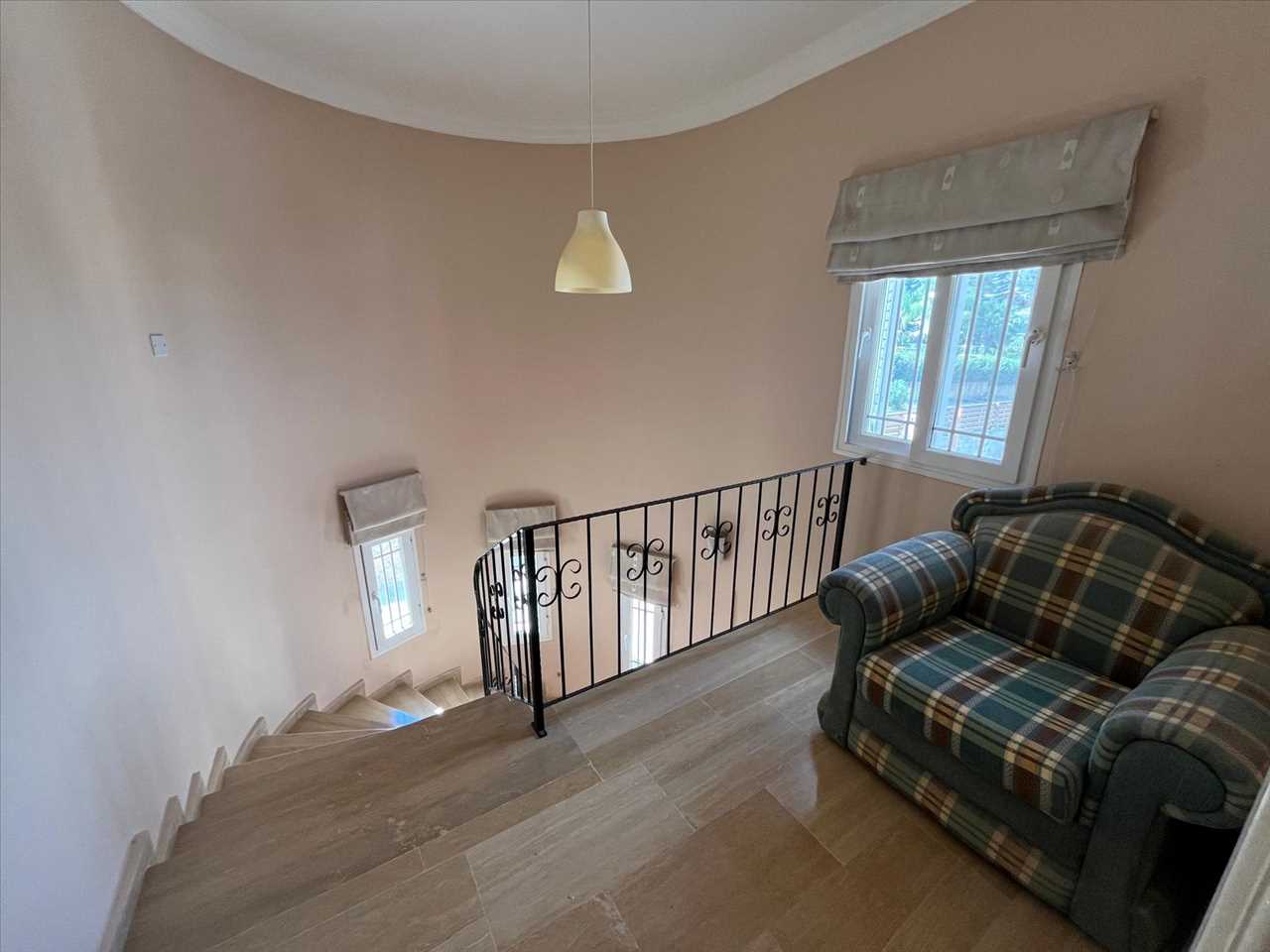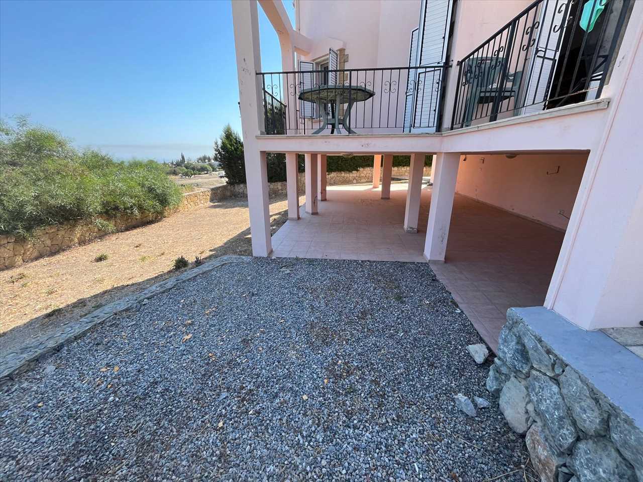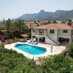 The villa’s exterior invites leisurely days with its private pool and expansive garden perfect for alfresco dining or simply relaxing under the brilliant Cypriot sun.