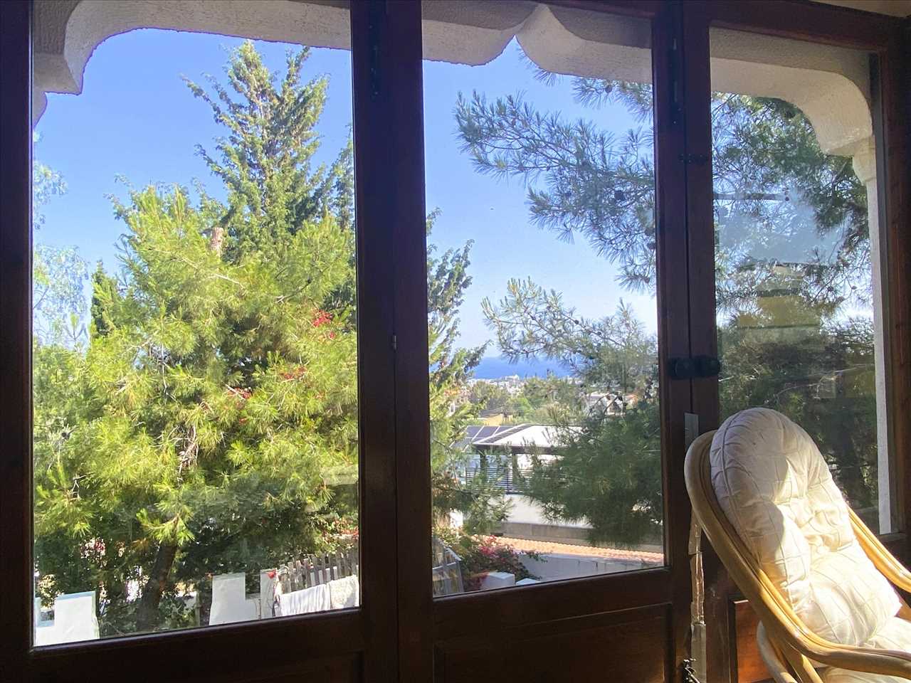 From the terracotta tiled entrance terrace there is a beautiful view to the sea and double timber doors leading into the entrance hall that has a single aspect, marble floor and steps leading up to the open plan living area and kitchen.