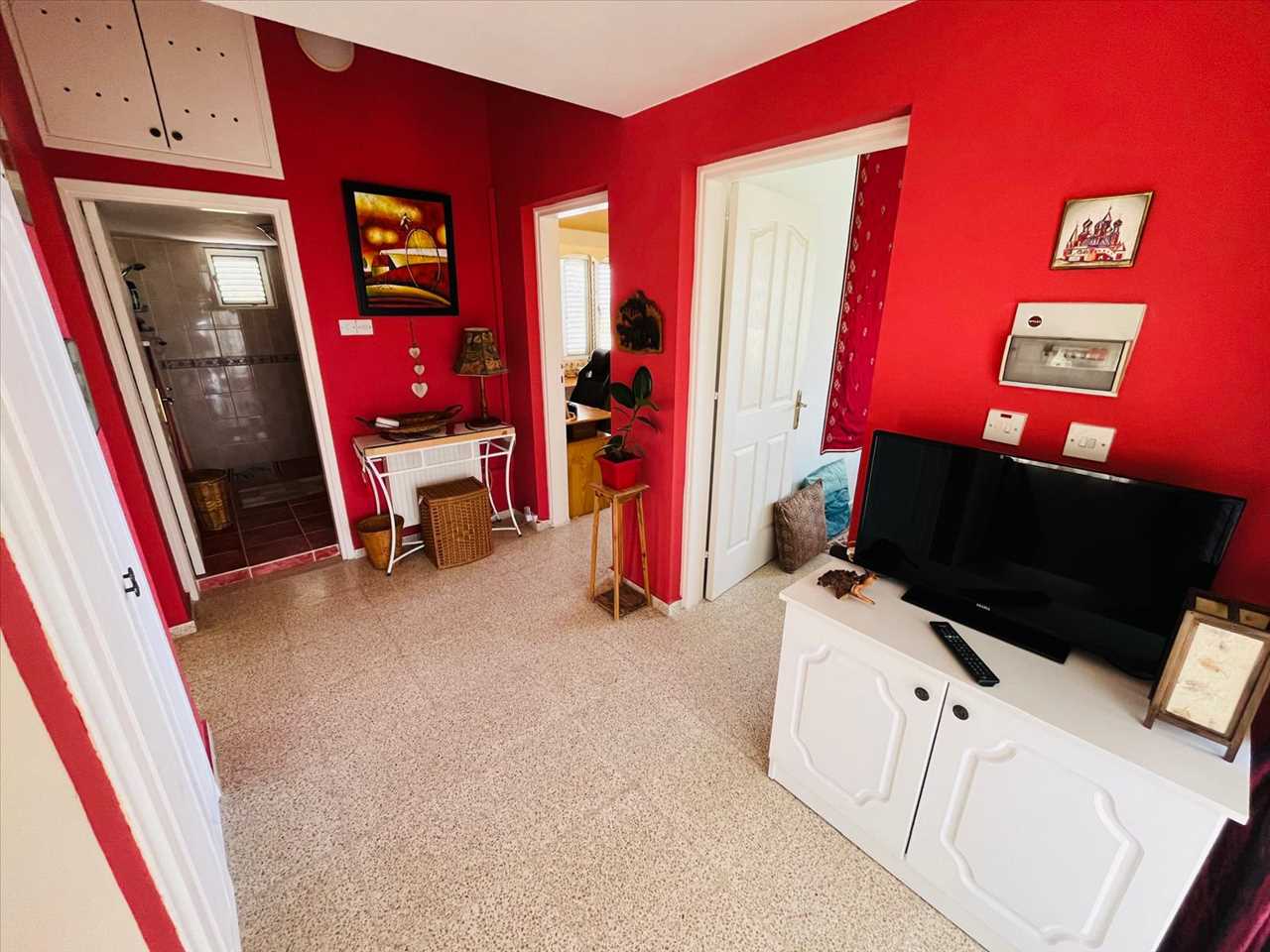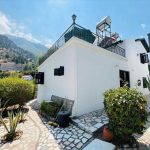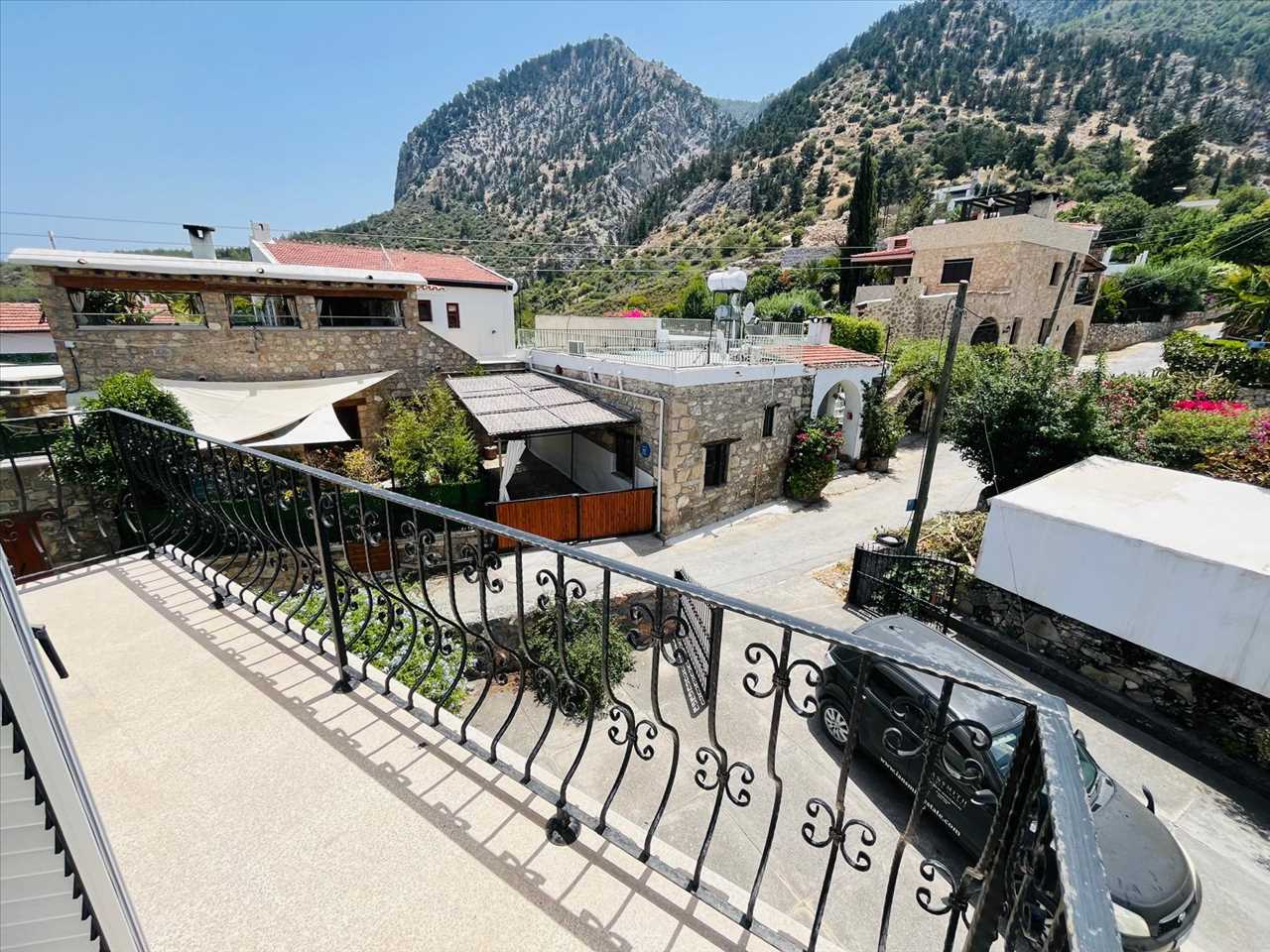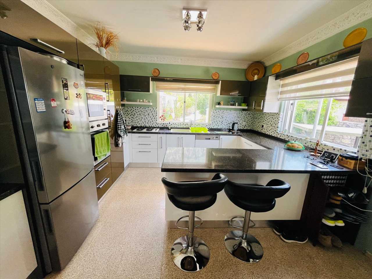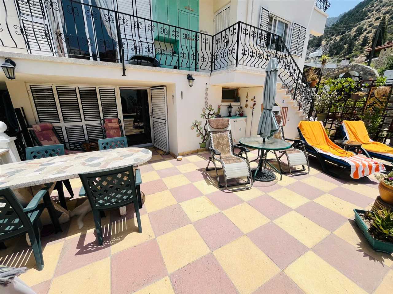 The property features spacious open plan living with an iron cast log burner in the lounge, fully fitted kitchen with a breakfast bar, spacious terraces, 3 bedrooms on the first floor, a self contained unit on the lower level with its own access, central heating throughout, ample outdoor seating area and an outdoor bar, private swimming pool, a beautiful garden with many mature (fruit) trees and absolutely stunning views to the sea and mountains. Individual deed in vendors name, house registered and exchange title.