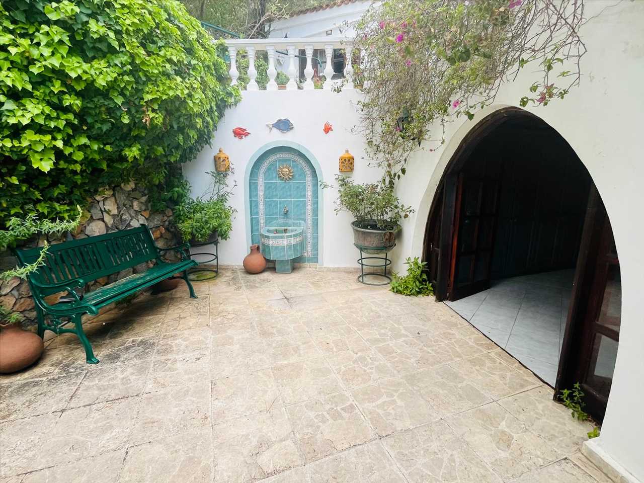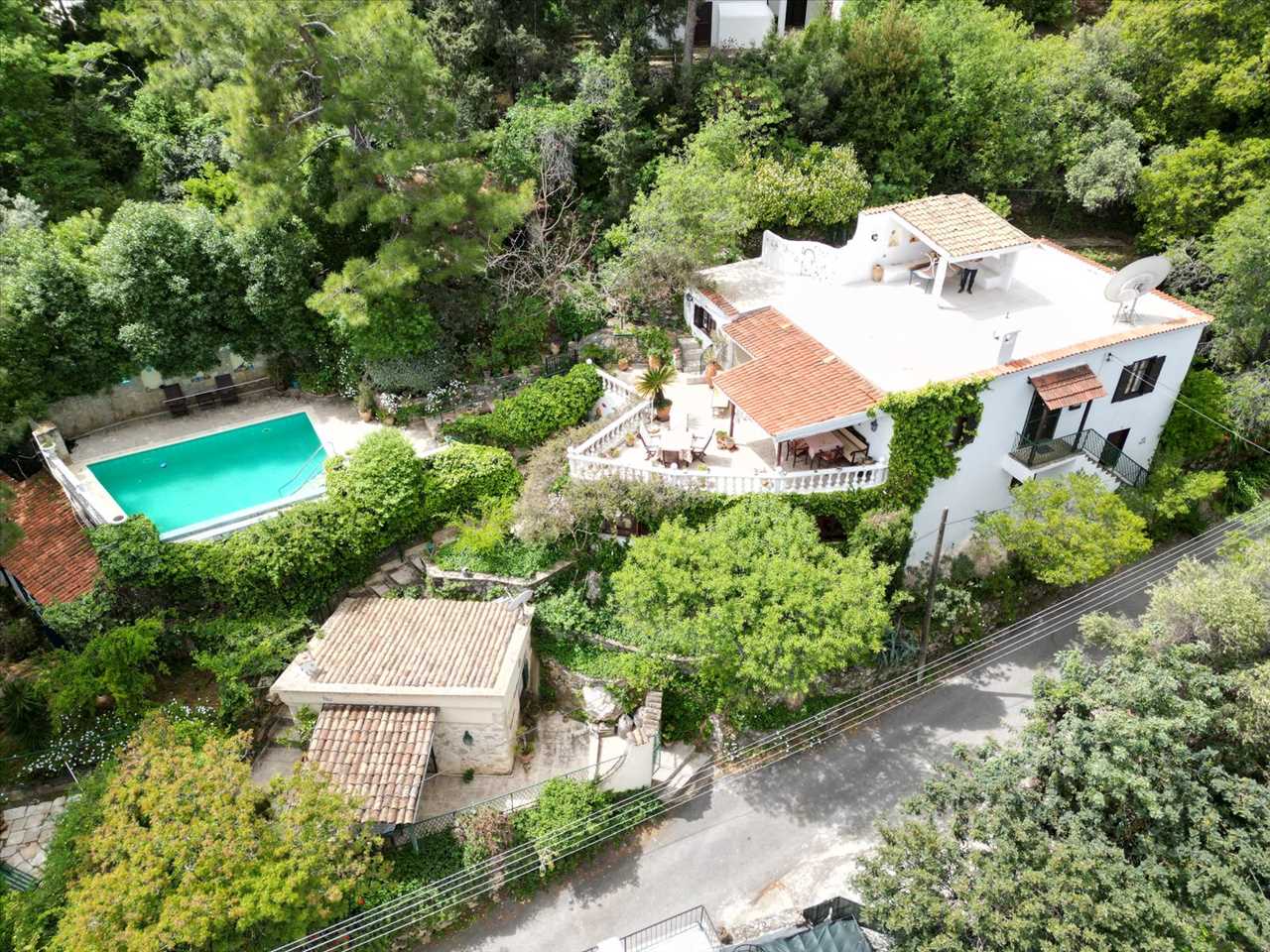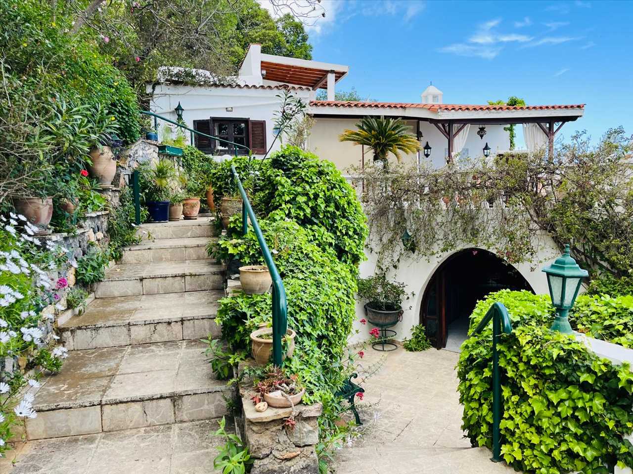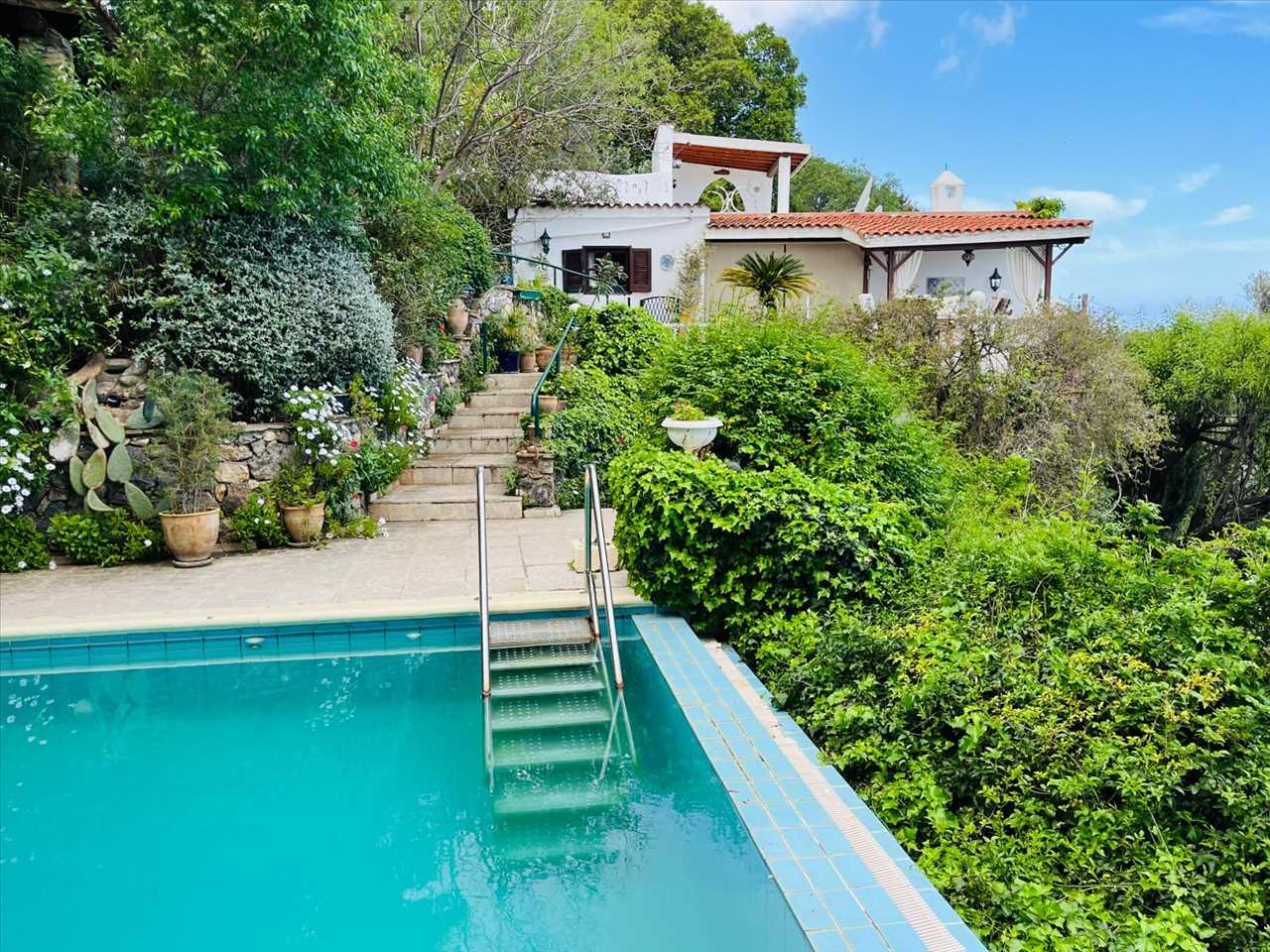 Located up the steps from the main house is a beautiful covered terrace set in a mature garden in an elevated position.