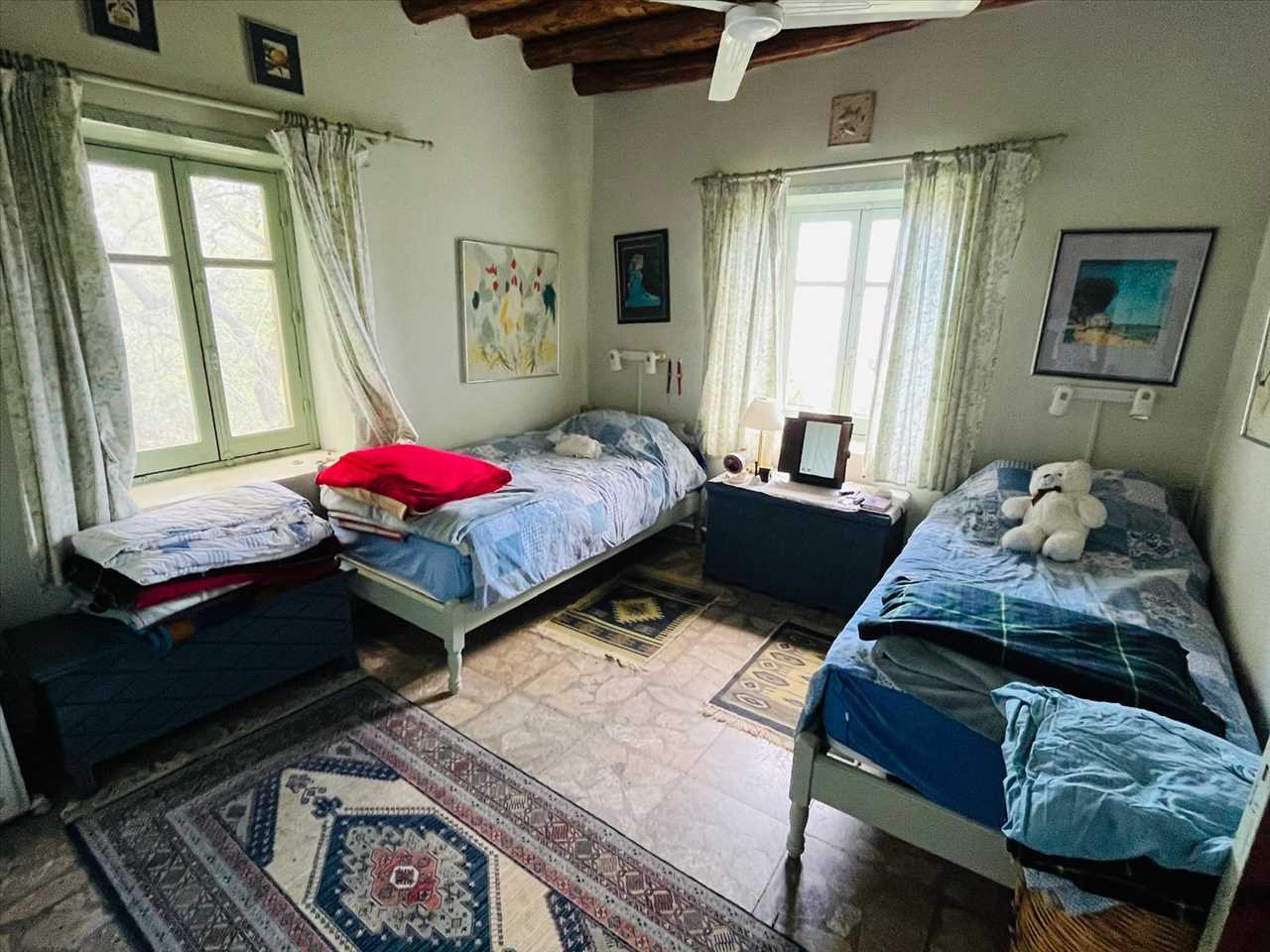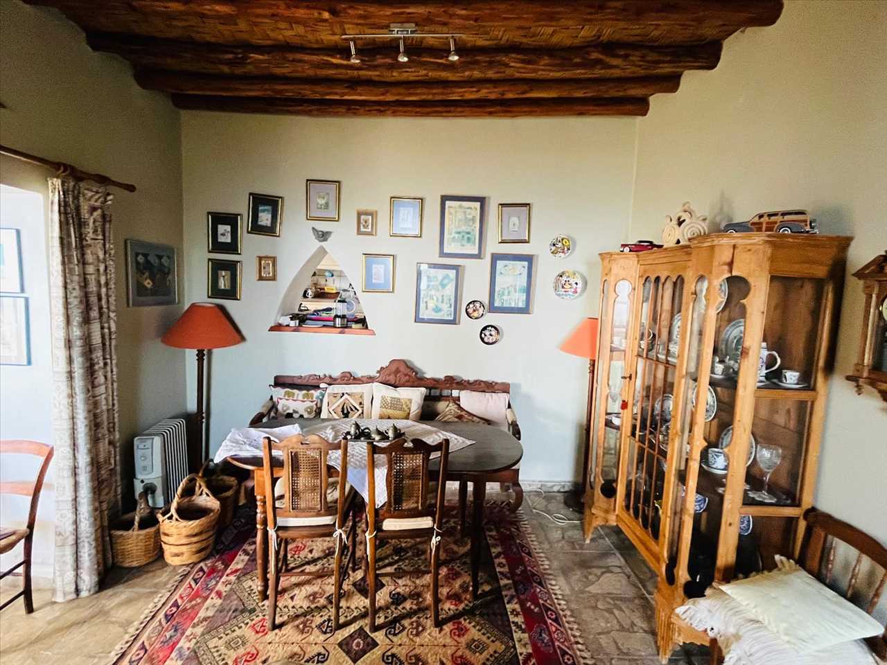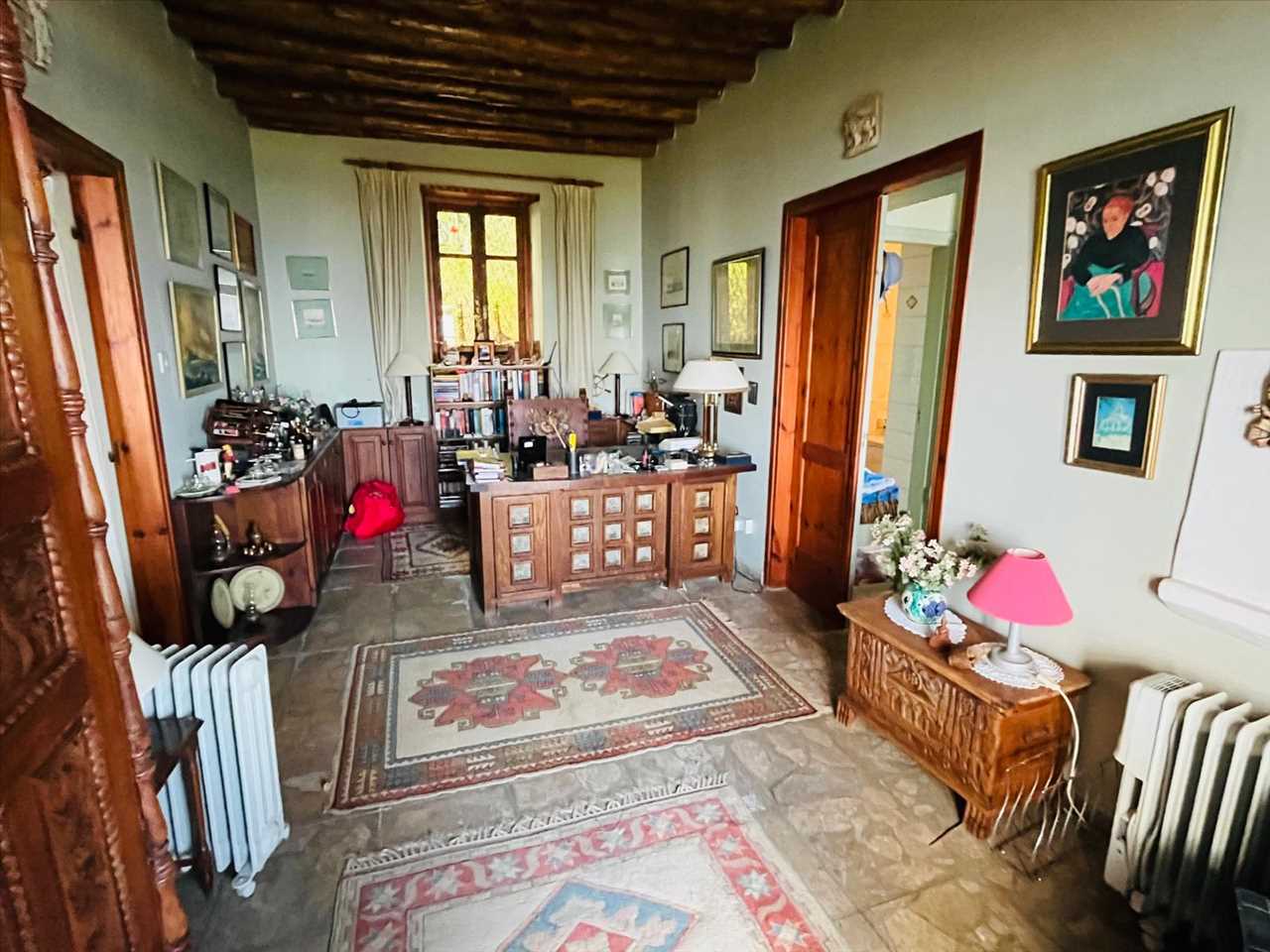 Dual aspect room currently used as a study with ceramic tiles and beamed ceilings that leads into the bedroom. This could easily be turned into another bedroom/nursery