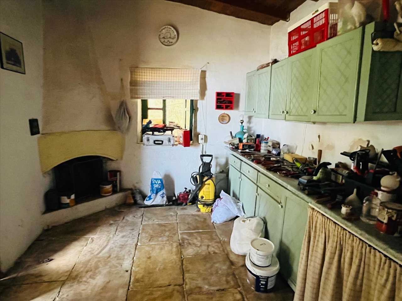 Dual aspect room with stone floors, an open fireplace and a fitted kitchen that could be used as another guest room.