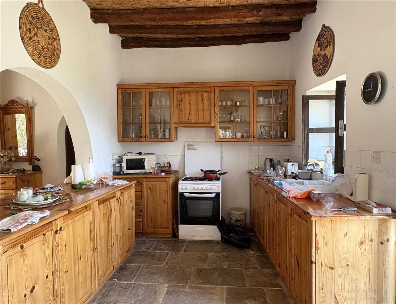 Discover the perfect blend of traditional charm and comfort in this well-maintained village house, ideally positioned in a tranquil setting with breathtaking views of the coast and surrounding mountains. This bright and spacious home features authentic character details including original stone floors, beamed ceilings, traditional wooden windows and shutters and an open fireplace for cosy winter evenings. There are two bedrooms in the main house plus a private guest suite with its own bedroom and shower room on the lower level. Outside there is covered off road parking, a low-maintenance garden and an expansive roof terrace – perfect for entertaining or relaxing while enjoying the panoramic views. The property is offered fully furnished, making it an ideal turnkey solution for a holiday retreat or permanent residence. Located in one of the most serene villages, early viewing is highly recommended. Leasehold.
