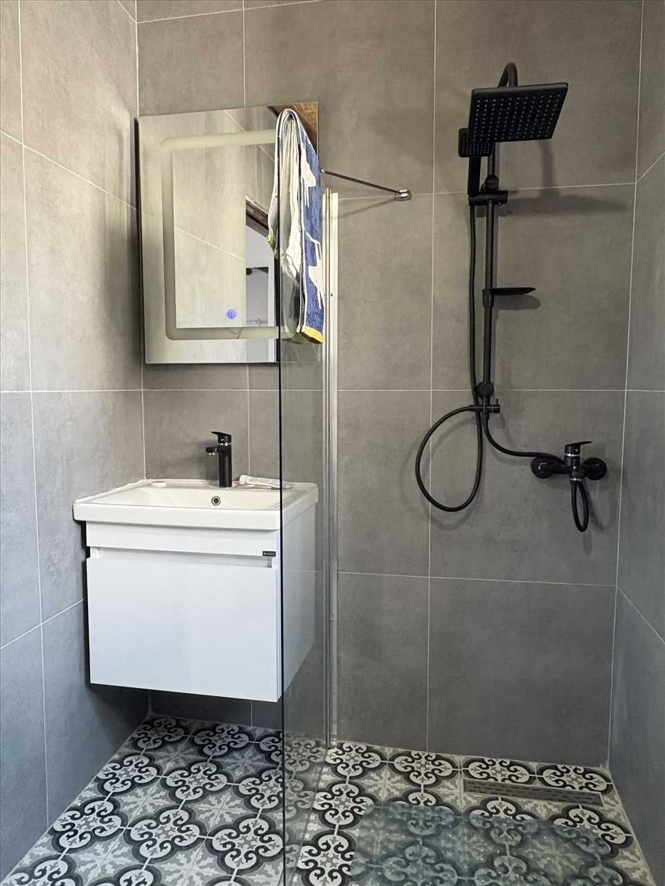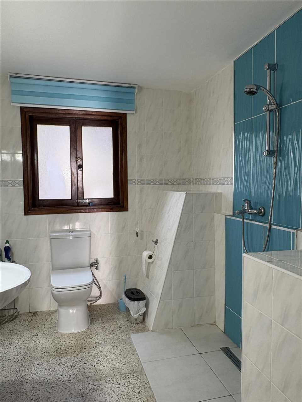 Single aspect, ceramic floor and wall tiles, washbasin, walk in shower and wc