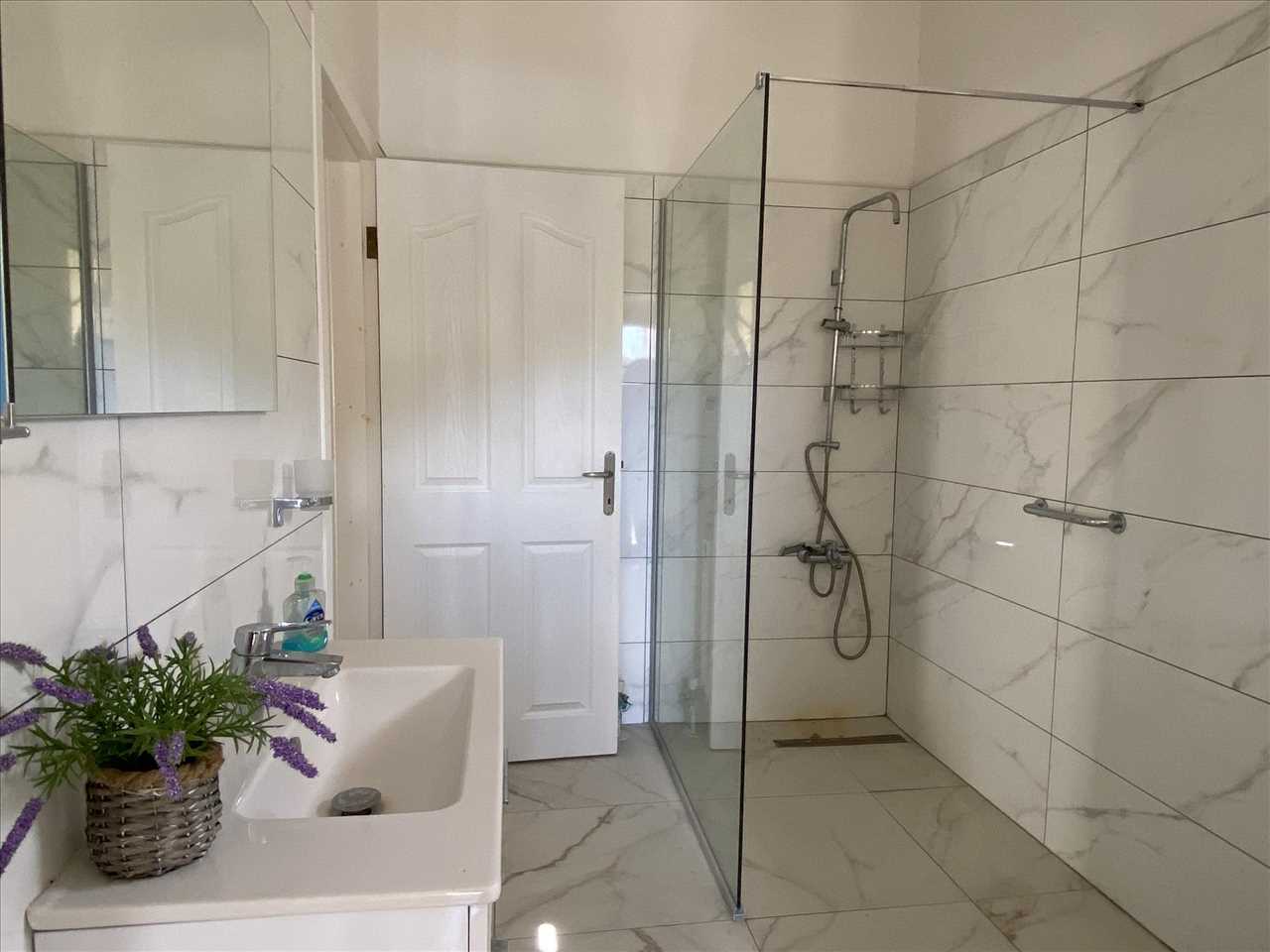 Single aspect, ceramic floor and wall tiles, wc, washbasin in vanity unit and large walk in shower with glass screen.