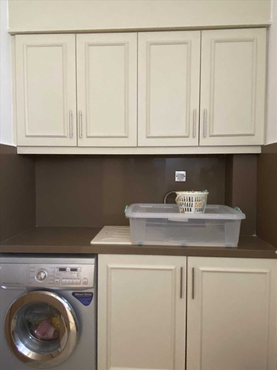 Single aspect, travertine floor, coved ceiling, fitted kitchen units with sink and washing machine and additional fitted cupboards offering extensive storage space for household items.