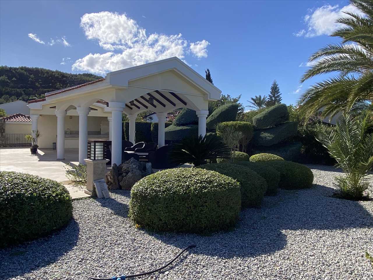 Discover the epitome of luxury living with this outstanding Mediterranean villa, set within more than 5,000 square meters of private, beautifully landscaped grounds. This meticulously maintained property seamlessly blends elegance, comfort, and functionality, offering a lifestyle of sophistication and tranquillity. The landscaped gardens, fruit orchards, extensive terraces, and a private swimming pool create an outdoor oasis for relaxation and entertainment with additional amenities that include a private guest house, vast covered parking area, garage and an expansive outdoor kitchen with a barbecue area and gazebo. The spacious and elegant interior offers 5 bedrooms, travertine floors, central heating, inverter air conditioning, striking double sweeping staircase and a beautiful kitchen with central island and high-quality appliances. The villa boasts unobstructed panoramic views of the coastline and a serene mountain backdrop and will be sold complete with furniture allowing you to step straight into a fully realized luxury lifestyle. This unique property comes highly recommended and offers an individual title deed with house registered and VAT paid.