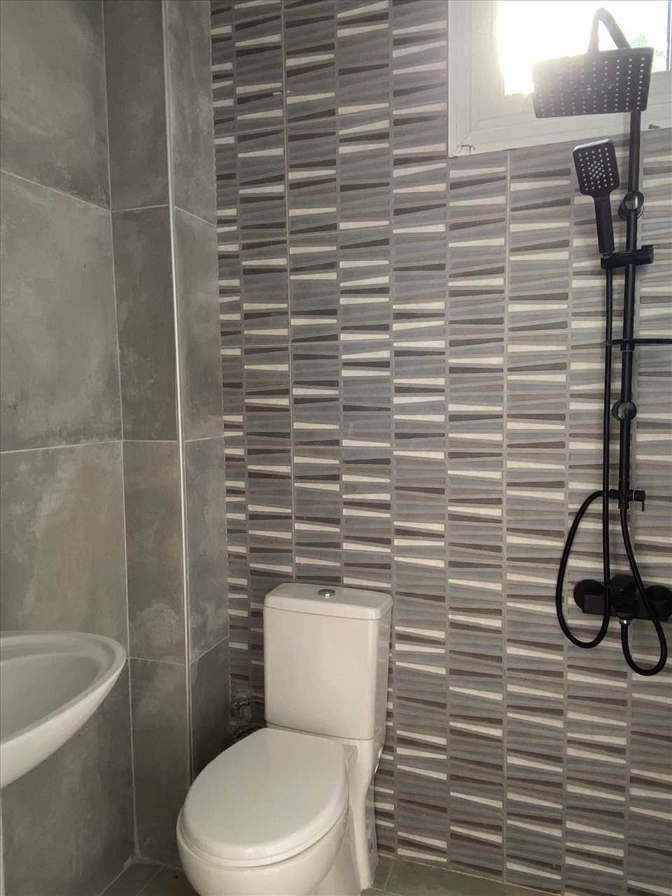 Single aspect, ceramic floor and wall tiles, wc, washbasin in marble topped vanity and walk in shower with glass screen.