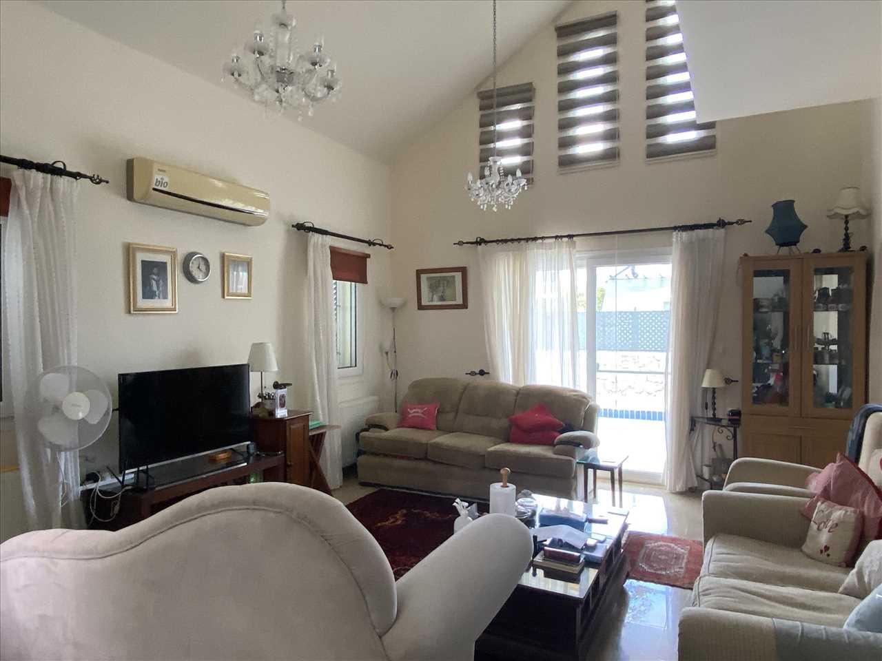 Triple aspect, travertine floor, double height vaulted ceiling, air conditioning, patio doors out to covered terrace overlooking the pool and arch leading through to the kitchen / dining area.