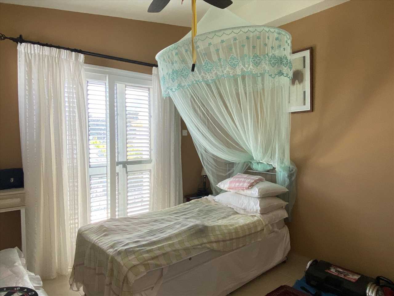 Dual aspect, ceramic floor, ceiling fan, fitted wardrobes and patio doors out to terrace.