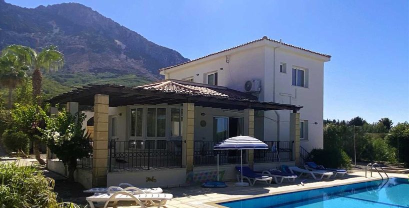 This Mediterranean villa offers a serene escape with its stunning sea and mountain vistas and peaceful surroundings. The residence boasts a harmonious blend of comfort and space, featuring four well-appointed bedrooms, three modern bathrooms, and air conditioning throughout. Nestled within a quiet neighbourhood, it offers tranquillity and convenience in equal measure, with easy access to local amenities and sandy beaches. The meticulously landscaped gardens and expansive terraces complement the large private swimming pool, creating an oasis for relaxation and entertainment. Prospective buyers are encouraged to schedule a viewing promptly to fully appreciate the qualities of this superb property. Title deed in vendors name, VAT paid and house registered. Furniture negotiable.
