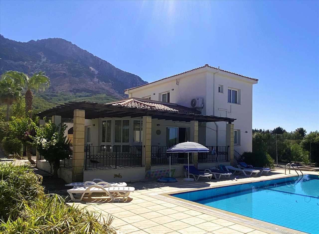 This Mediterranean villa offers a serene escape with its stunning sea and mountain vistas and peaceful surroundings. The residence boasts a harmonious blend of comfort and space, featuring four well-appointed bedrooms, three modern bathrooms, and air conditioning throughout. Nestled within a quiet neighbourhood, it offers tranquillity and convenience in equal measure, with easy access to local amenities and sandy beaches. The meticulously landscaped gardens and expansive terraces complement the large private swimming pool, creating an oasis for relaxation and entertainment. Prospective buyers are encouraged to schedule a viewing promptly to fully appreciate the qualities of this superb property. Title deed in vendors name, VAT paid and house registered. Furniture negotiable.