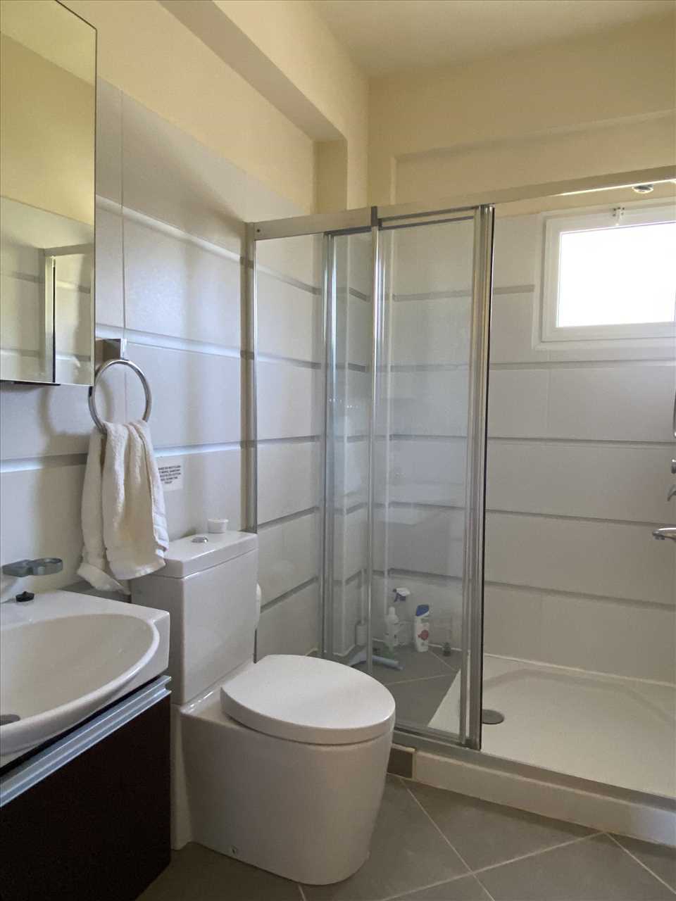 Single aspect, ceramic floor and wall tiles, wc, washbasin and corner shower in cubicle
