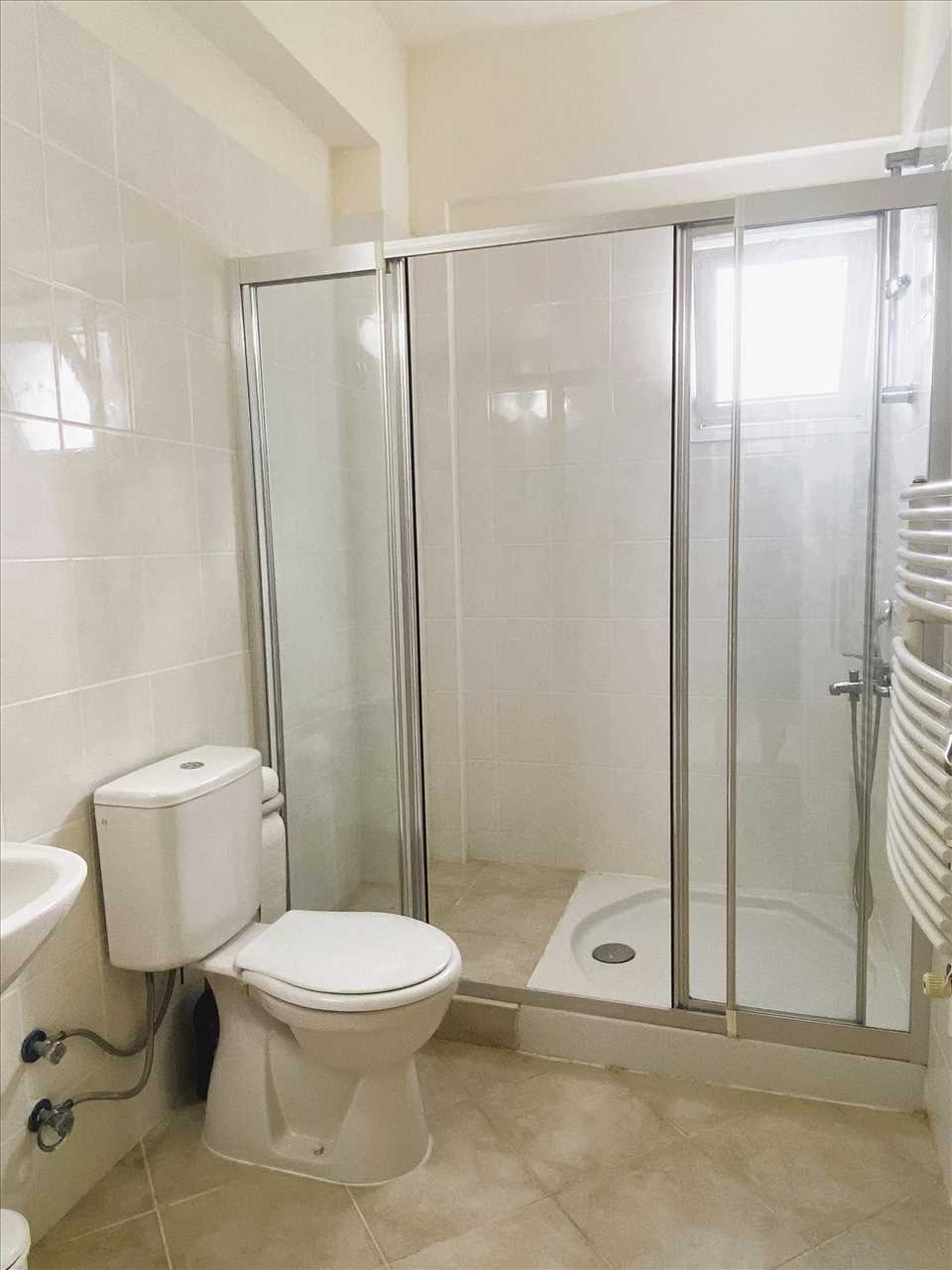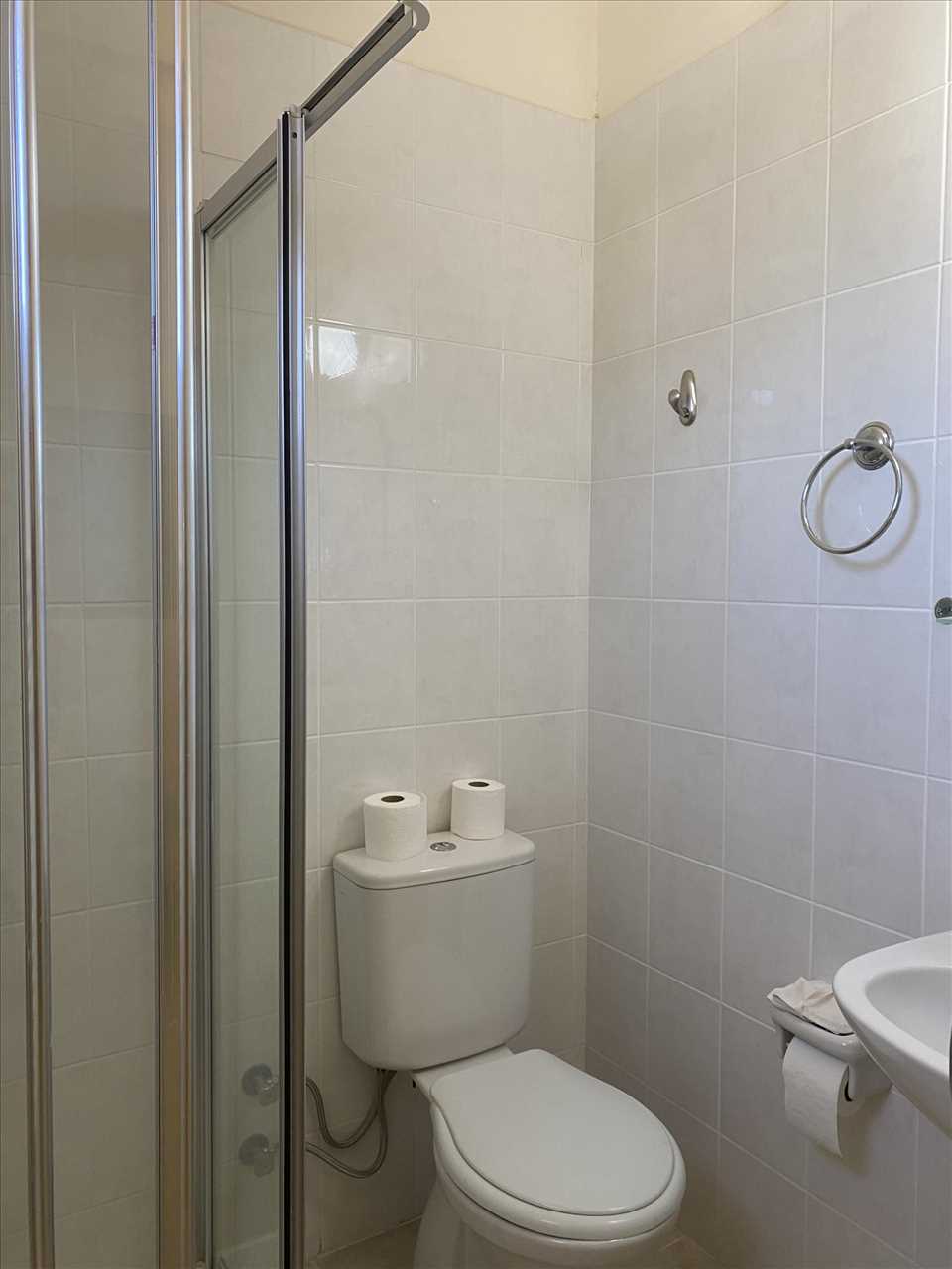 Single aspect, ceramic floor and wall tiles, wc, bidet, heated towel rail, washbasin and shower with screen.