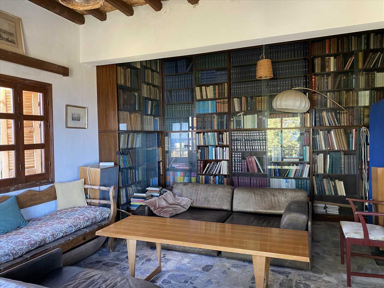 Triple aspect with mosaic floor tiles, beamed ceiling, open fire place, sliding doors leading out onto the balcony and a library in the back.