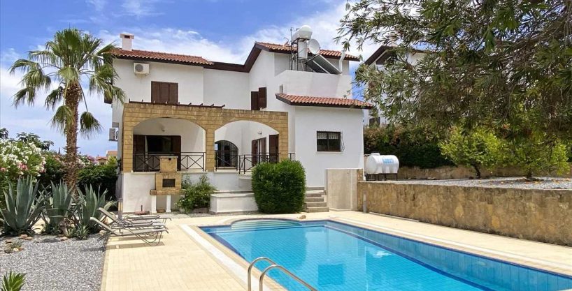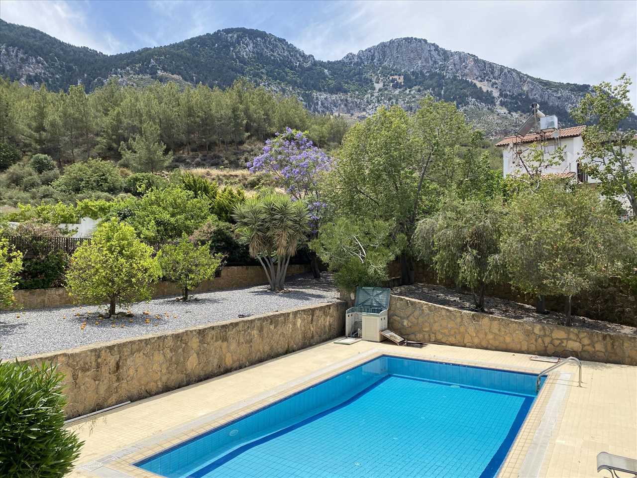 This beautifully maintained villa occupies a superb position in Lapta in a quiet residential area with a breathtaking mountain backdrop. The property offers spacious and well planned living accommodation with central heating and air-conditioning throughout, three bedrooms, two bathrooms, a bright and airy lounge with open fireplace and a separate kitchen / dining room. Outside, the huge entertaining terrace overlooks mature landscaped gardens that offer privacy and seclusion and there is a private swimming pool, dining terrace with built in bbq and a fabulous view to the mountains. This is an excellent property that is highly recommended for viewing and will be sold furnished and ready to move into. Individual title deed, VAT paid and house registered.