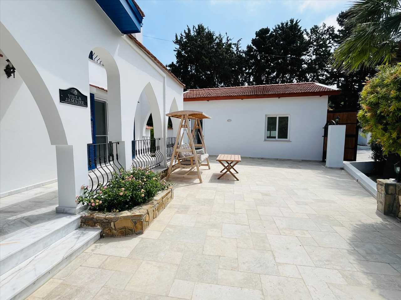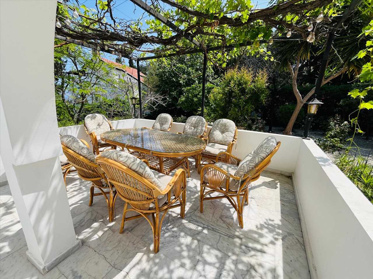 Spacious terrace off the kitchen with a lovely dining area under the grape vines