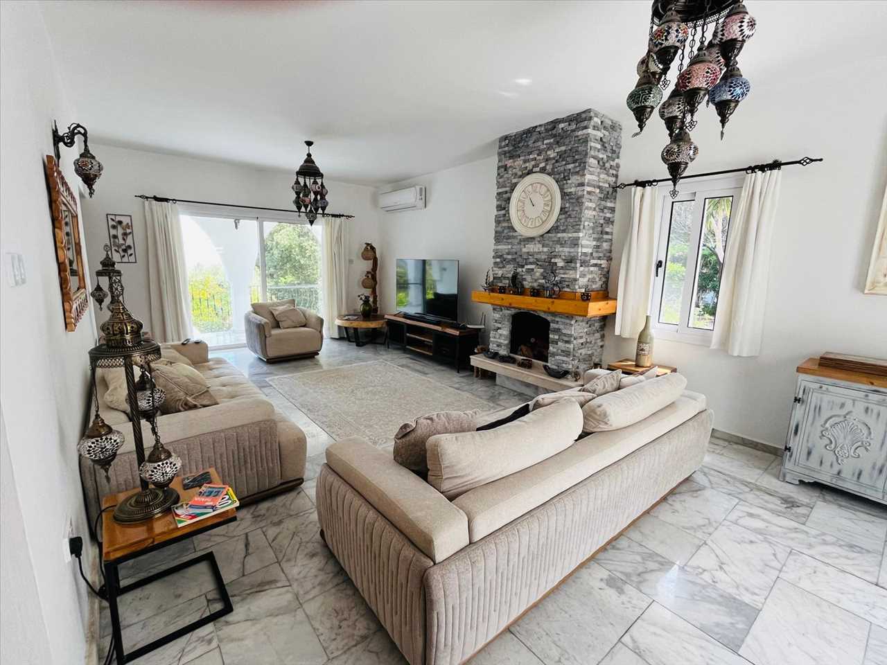 Spacious room off hall with marble floors, triple aspect, sliding doors onto north and south facing terraces, stone fireplace, air conditioning and fabulous views to the sea