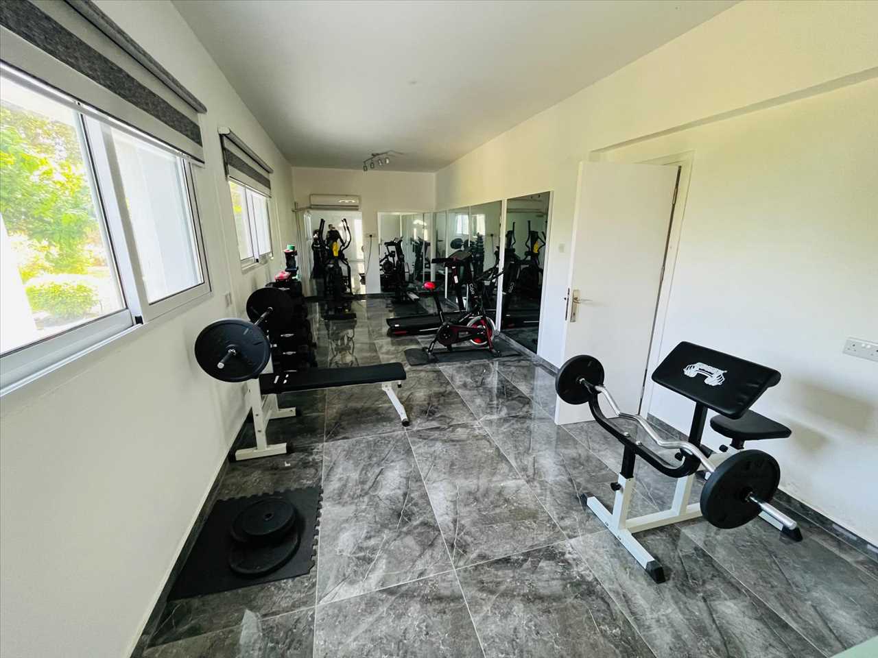 Via an internal staircase from the house to a hall area in the basement, dual aspect gym with marble floors and air conditioning.