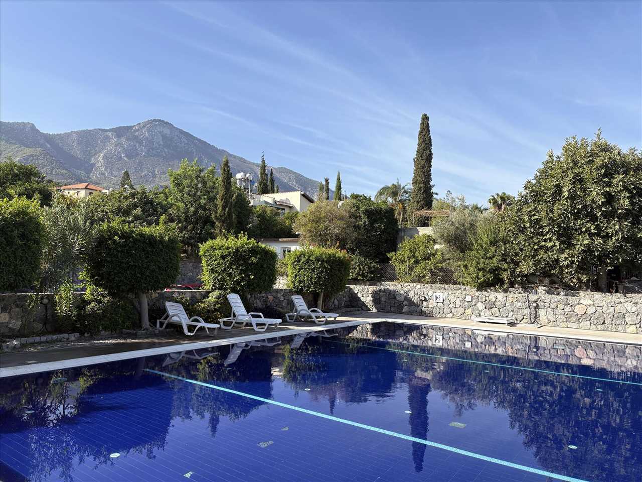 Located close to the centre of this charming village, we are pleased to present this immaculate apartment being offered for sale fully furnished and ready to move in to. The property offers a bright and spacious open plan living area, 2 bedrooms and 2 bathrooms, air conditioning, fly screens, fitted kitchen with appliances and a pergola covered balcony with a stunning view to mountains. Within the beautifully maintained grounds there is a unique Ottoman style courtyard, communal swimming pool and large parking area; additionally the site benefits from a secure gated entry system. An ideal rental investment or holiday home, this excellent property is located just a couple of minutes’ walk from the village centre shops, restaurants and bars and comes highly recommended for viewing. Pre 74 Turkish Title with VAT paid and apartment registered on deeds.