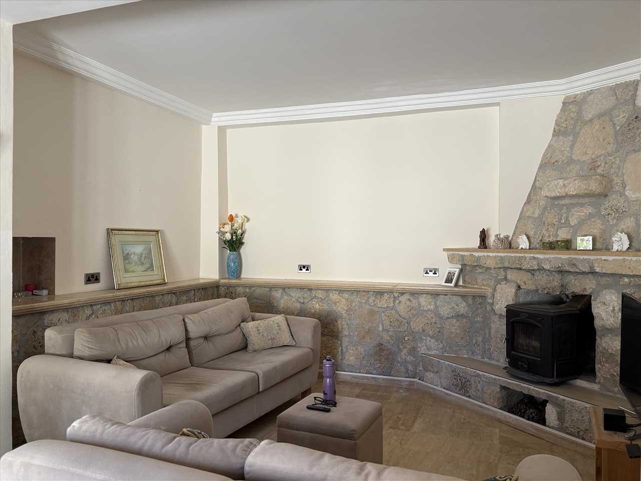 Dual aspect, marble floor, air conditioning and stone fireplace with a wood burning stove.