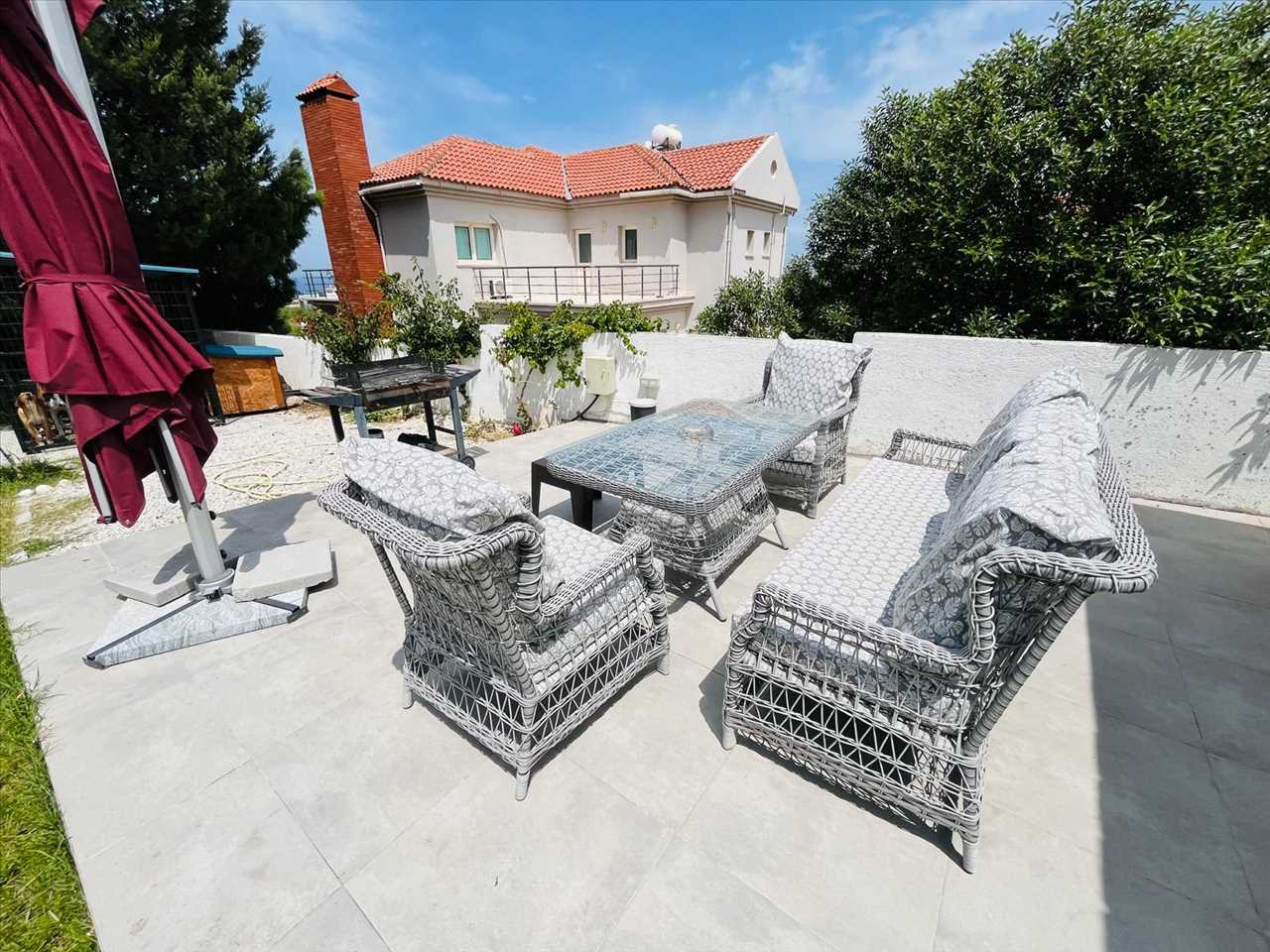 Spacious covered terrace at the back of the villa, overlooking the garden and accessed through both the lounge and the kitchen.